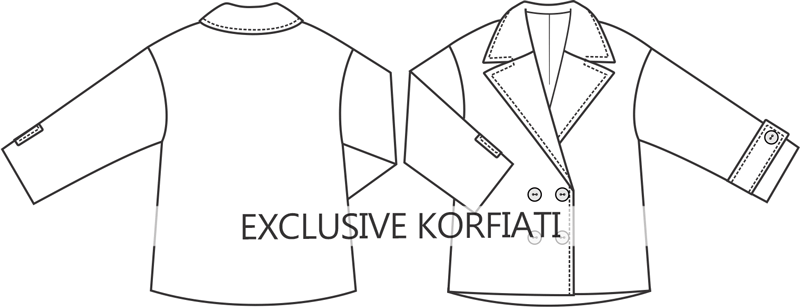 A front and back design sketch (or technical flat) of the jacket/coat is shown in Fig. 3.