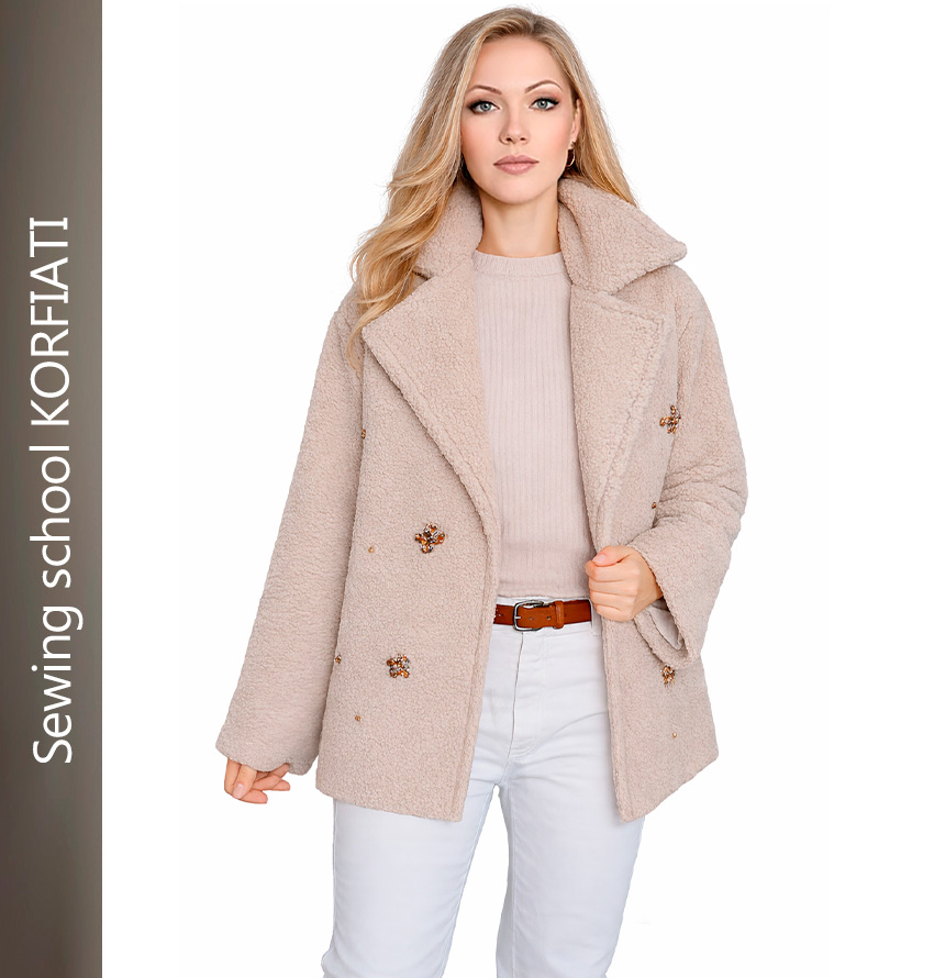 Teddy fur garments are among the coziest and most sought-after trends of recent years, and their popularity shows no sign of fading. The fabric gets its name from its resemblance to the texture of a classic teddy bear: soft, slightly curly, and incredibly pleasant to the touch. In this lesson, we offer a free pdf-pattern for an original teddy fur jacket. You can download the pattern in six standard sizes and craft your own garment.